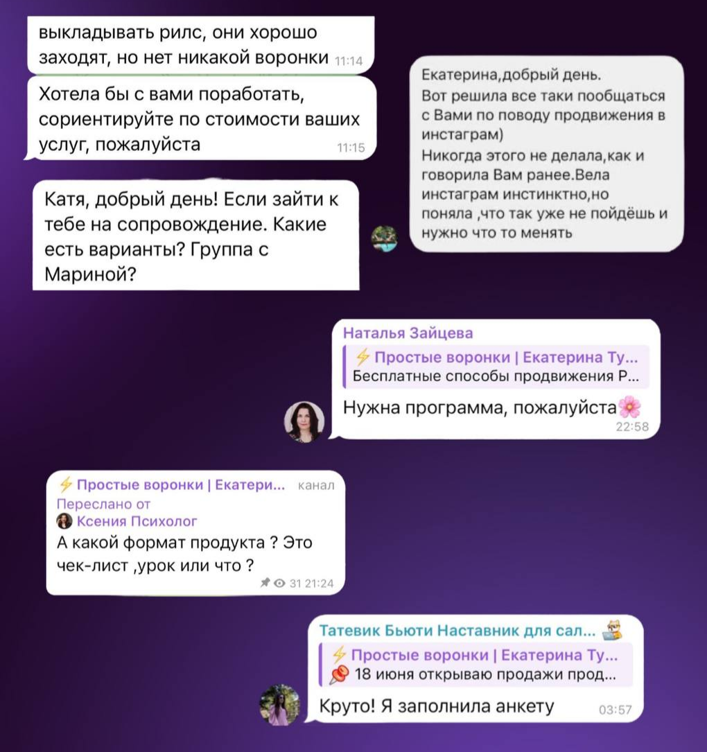 Навык переписки и квалификации клиентов, чтобы каждого нового подписчика максимально быстро превращать в клиента. Навык успешного проведения бесплатной консультации, разбор скриптов продаж и отработки возражений, чтобы вы с легкостью могли выйти на 100, 200, 300,500 тыс